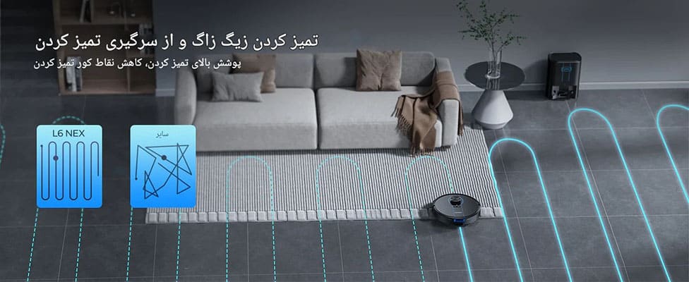 💡 تشخیص هوشمند فرش: جاروبرقیهای ربات Laresar L6 Nex همچنین از فناوری تقویت خودکار فرش ژاپنی بهره میبرند. این فناوری پس از تشخیص فرش، مکش را افزایش میدهد تا بتواند موهای حیوانات خانگی چسبیده به فرش را جمع کند. ایدهآل برای خانوادههایی که حیوان خانگی دارند.