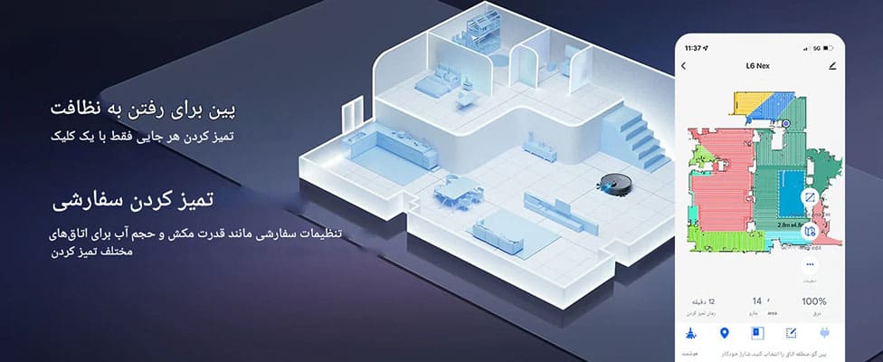 نور لیداری: این جاروبرقی از فناوری لیدار برای نقشهبرداری دقیق از فضای داخلی شما استفاده میکند. این فناوری امکان تشخیص بلادرنگ چیدمان اتاق و برنامهریزی هوشمند مسیرهای تمیز کردن را فراهم میکند، به طور موثر از موانع عبور میکند و هر زاویهای را برای عملکرد تمیز کردن بهبود یافته پوشش میدهد.